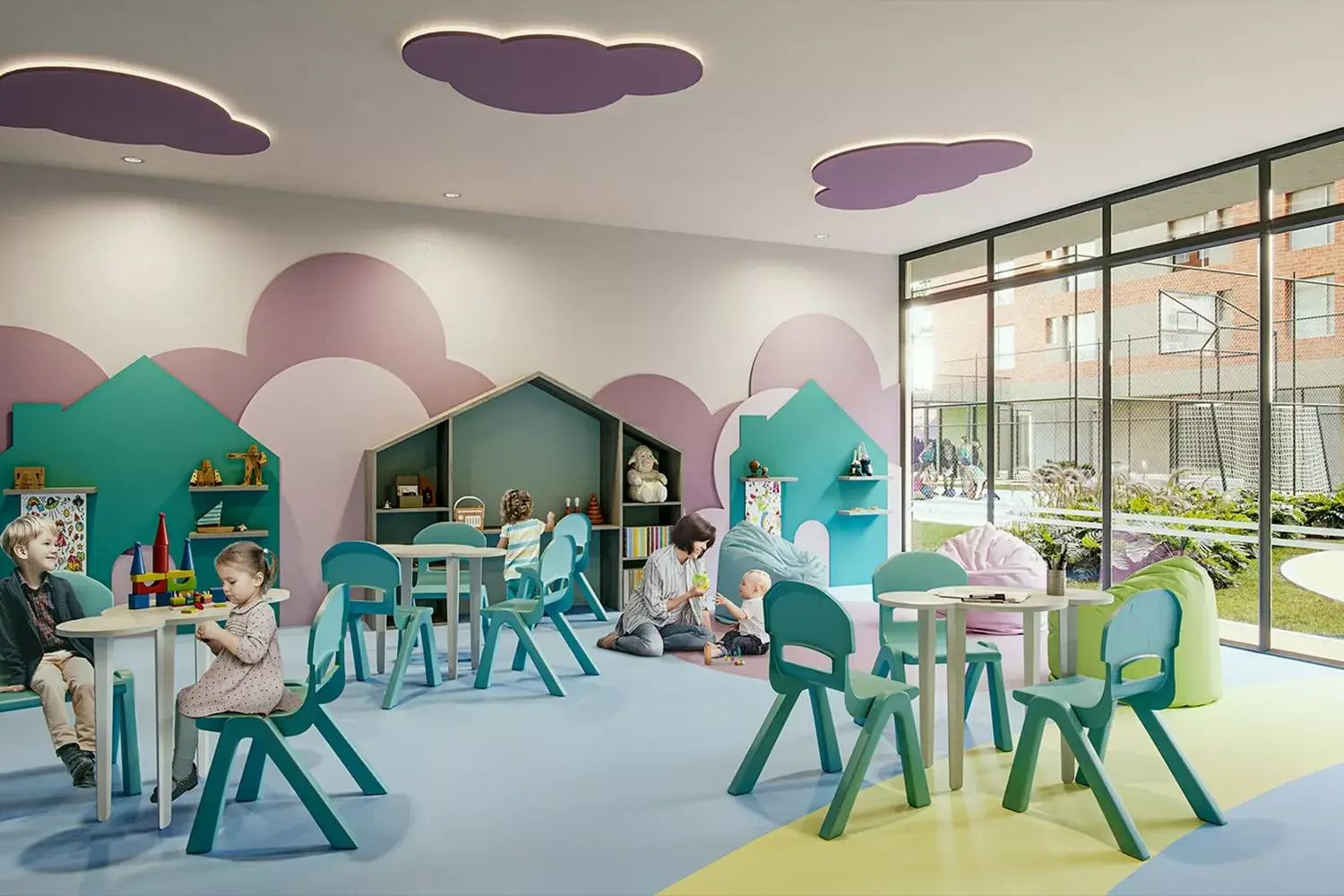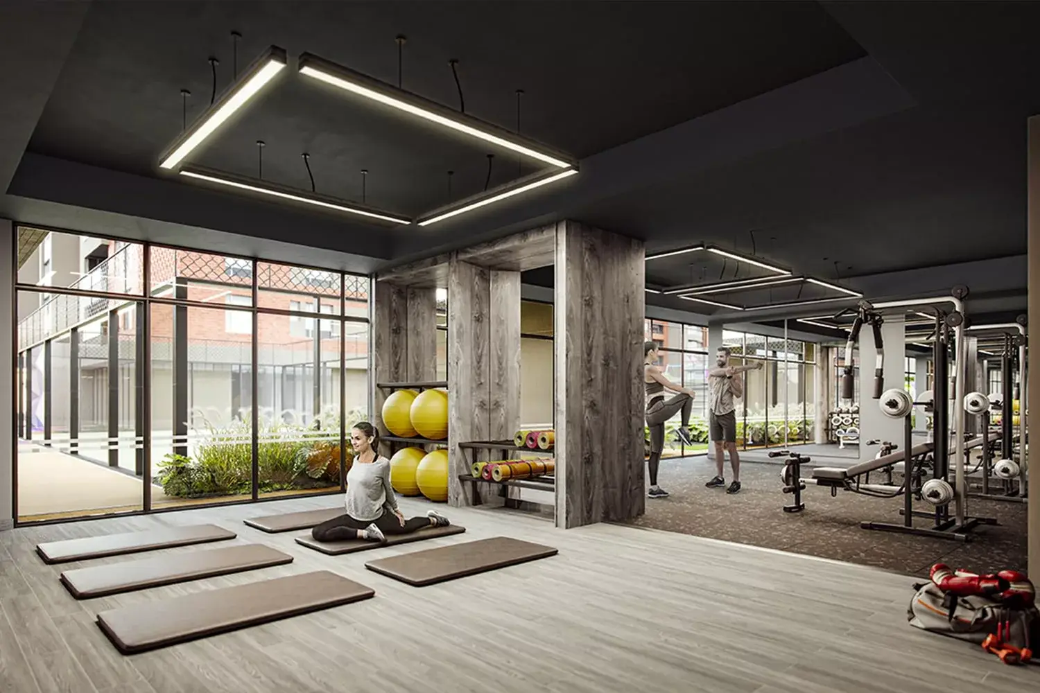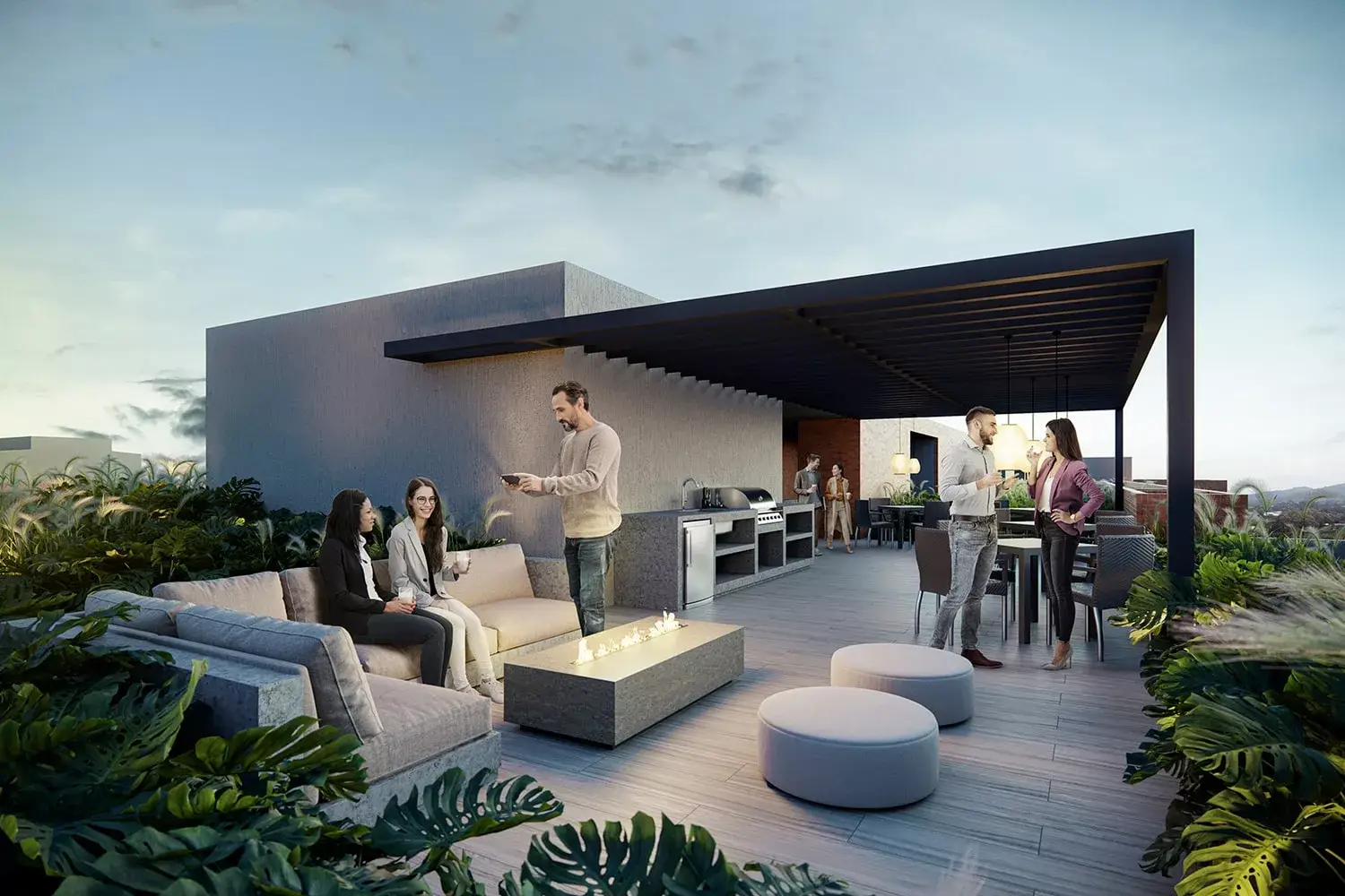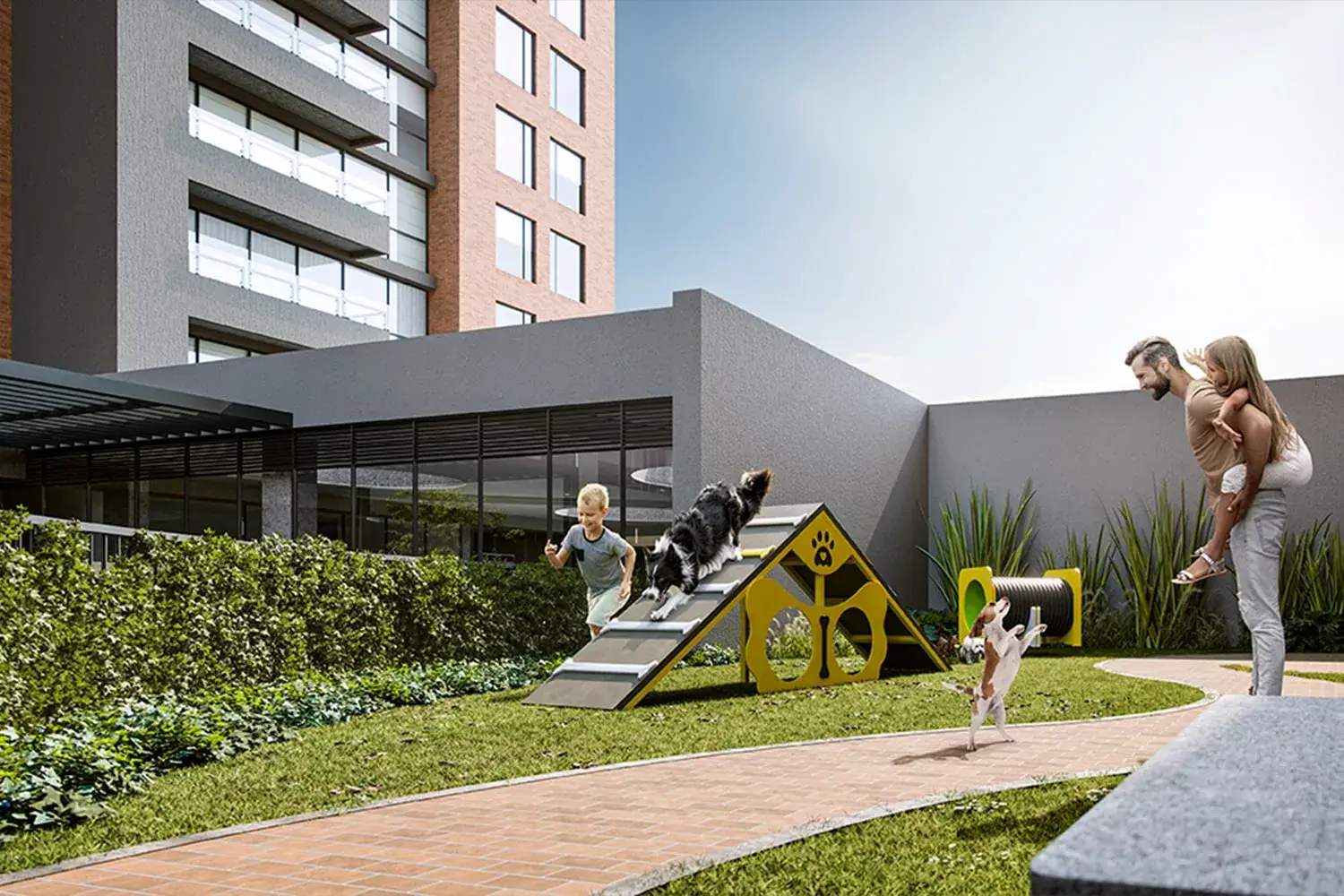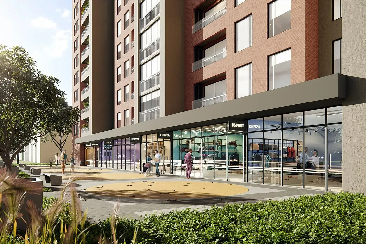 La primera etapa está conformada por la torre 1, con esta etapa y al finalizar las entregas se habilitarán las siguientes zonas comunes: lobby de acceso peatonal, co-working, cinema, administración, zona de empleados, baño, cuarto de seguridad y control, zona de bici parqueaderos con estación de lavado de bicicletas, parque infantil, car lobby y zona lounge.