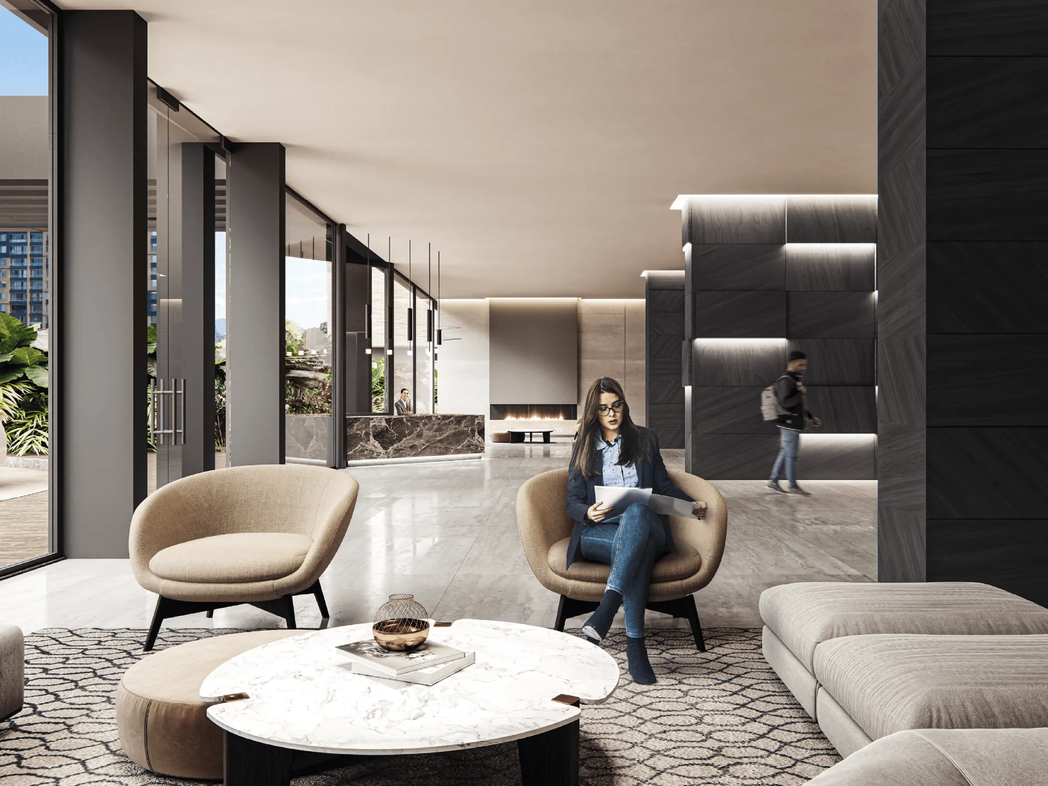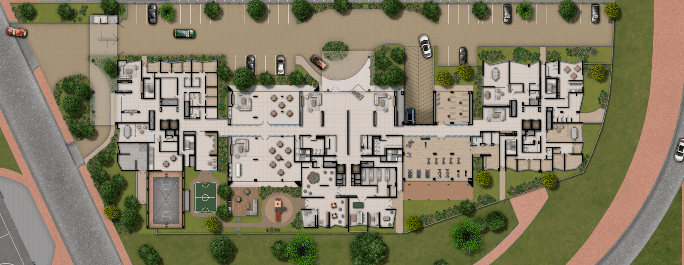 La primera etapa está conformada por la torre 2 y 3, con esta etapa y al finalizar las entregas se habilitarán las siguientes zonas comunes: car lobby, gimnasio, zona juvenil, zona infantil, zona de juegos infantiles y cinema. La segunda etapa está conformada por la torre 1, la cancha múltiple, salones comunales, zona BBQ y zona para mascotas serán habilitadas al finalizar la entrega de la torre 1.