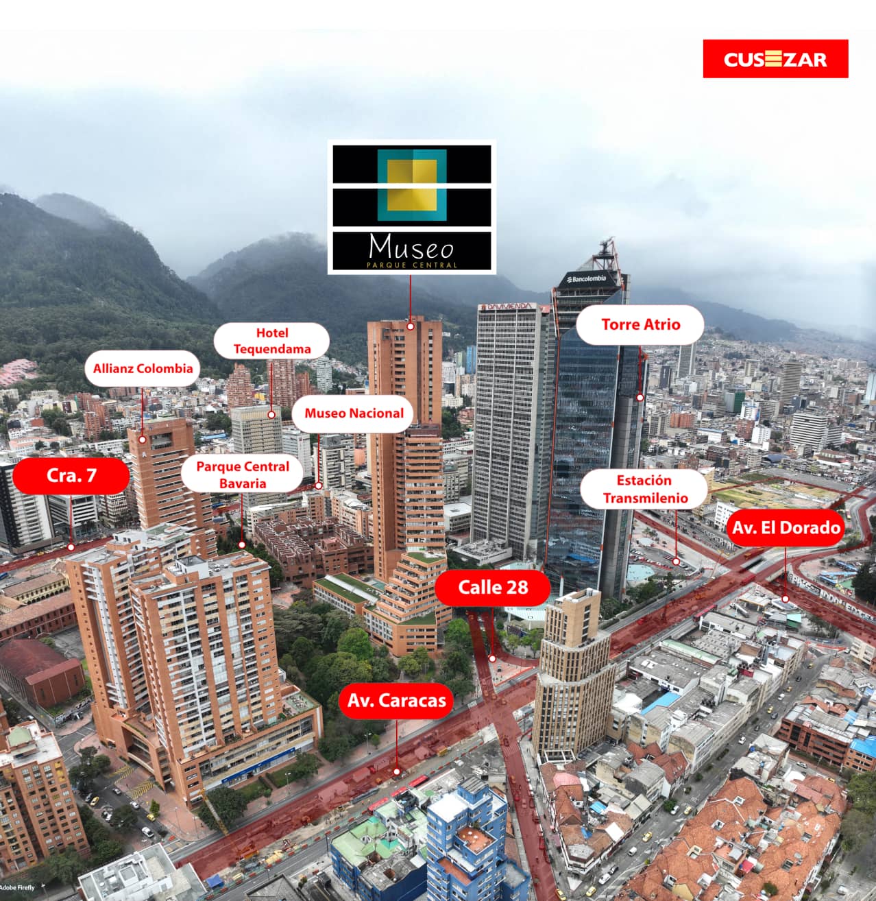 Las imágenes utilizadas en la presentación del proyecto, son representaciones digitales del diseño que junto con los apartamentos modelo y lobby exhibidos por Cusezar pueden variar en la percepción y construcción final. Así mismo, el mobiliario, electrodomésticos, gasodomésticos, acabados y demás elementos que aparecen en las imágenes o en el apartamento o casa modelo, son una representación con el fin de ilustrar la utilización de los espacios y pueden diferir de lo(s) entregado(s) o no ser entregado(s) según lo convenido en los contratos.