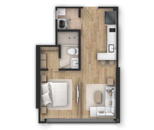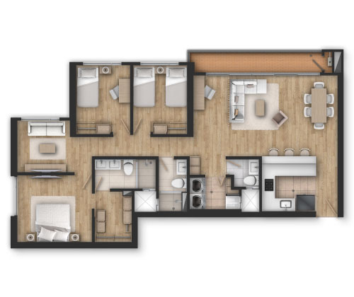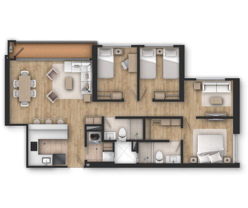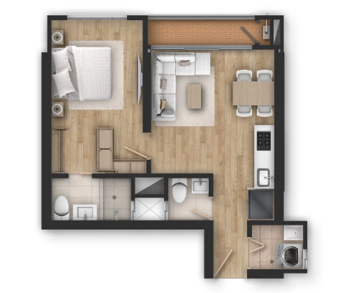 Las dotaciones de las zonas comunes, el mobiliario y los colores planteados, podrán ser modificados por el constructor de acuerdo a la disponibilidad de los elementos al momento de la entrega de los espacios.