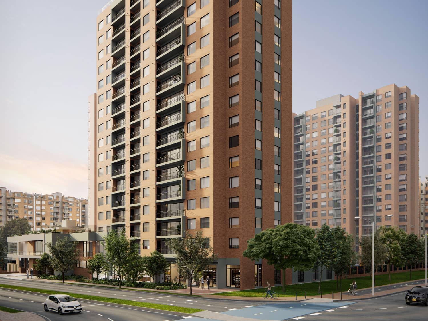 “Tuset es un proyecto mixto de vivienda NO VIS y comercio, ubicado en el noroccidente de Bogotá. Estará conformado por 3 torres de vivienda, en el primer piso de la torre 3 y con acceso desde el exterior se encontrará la zona comercial.
