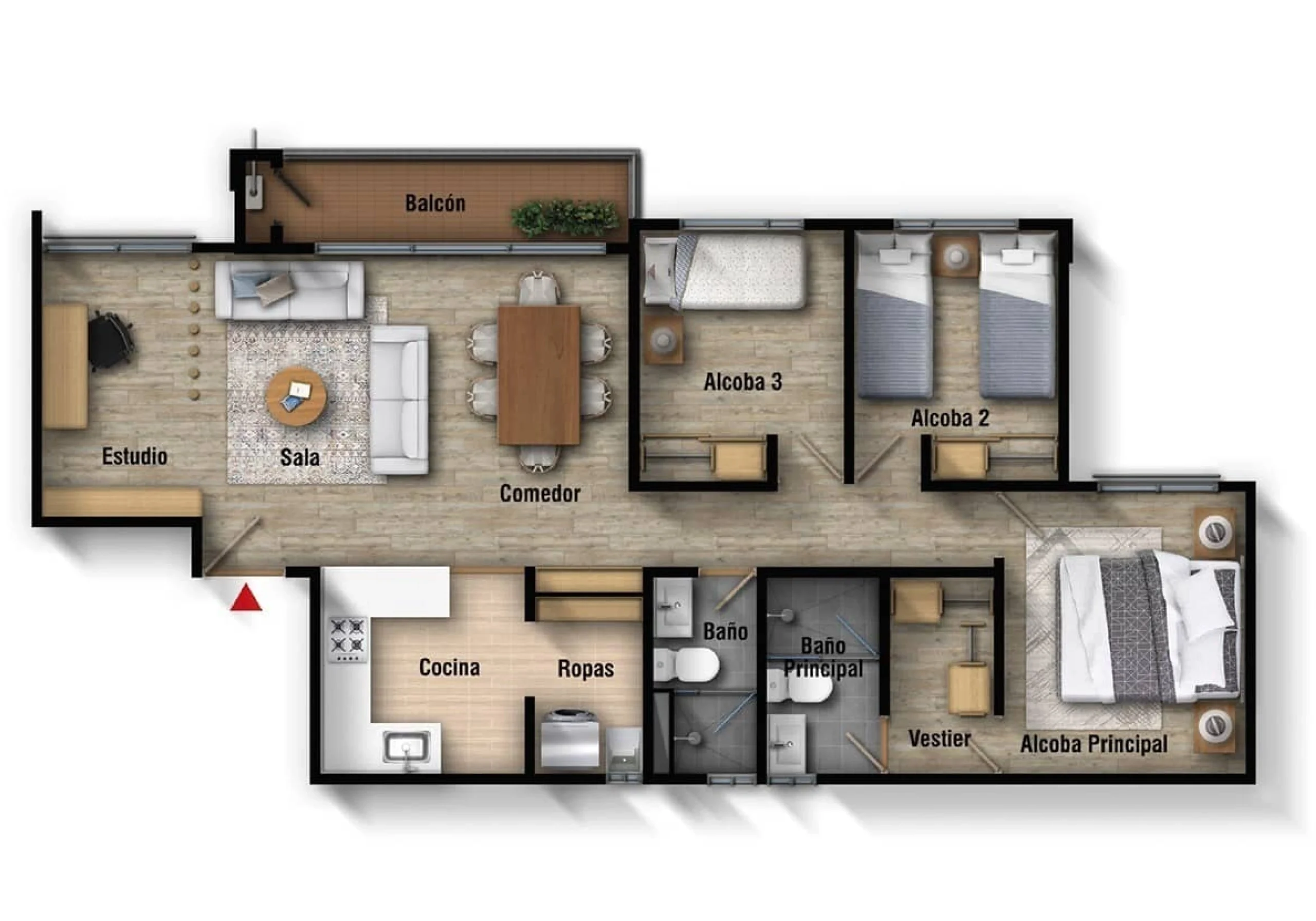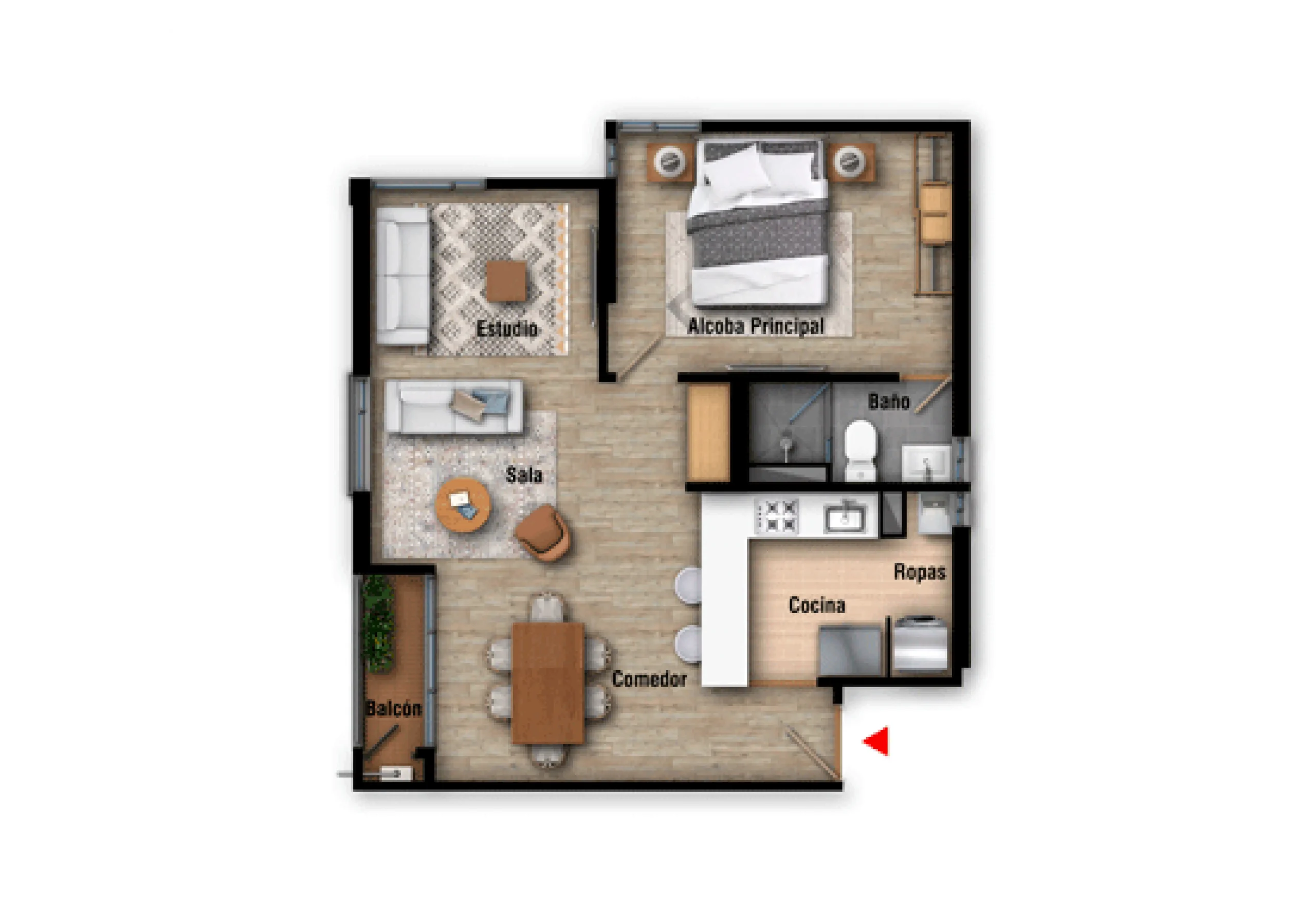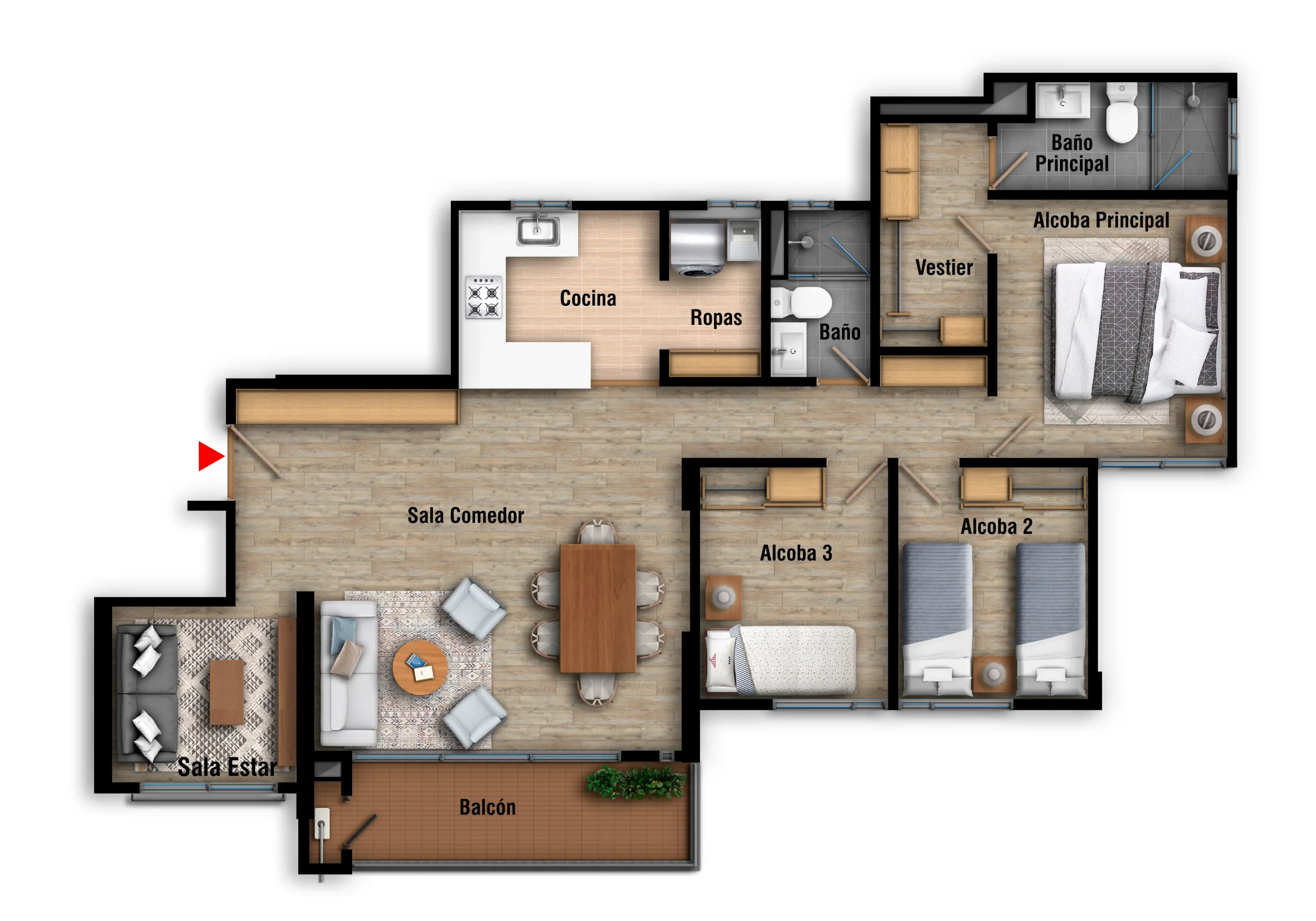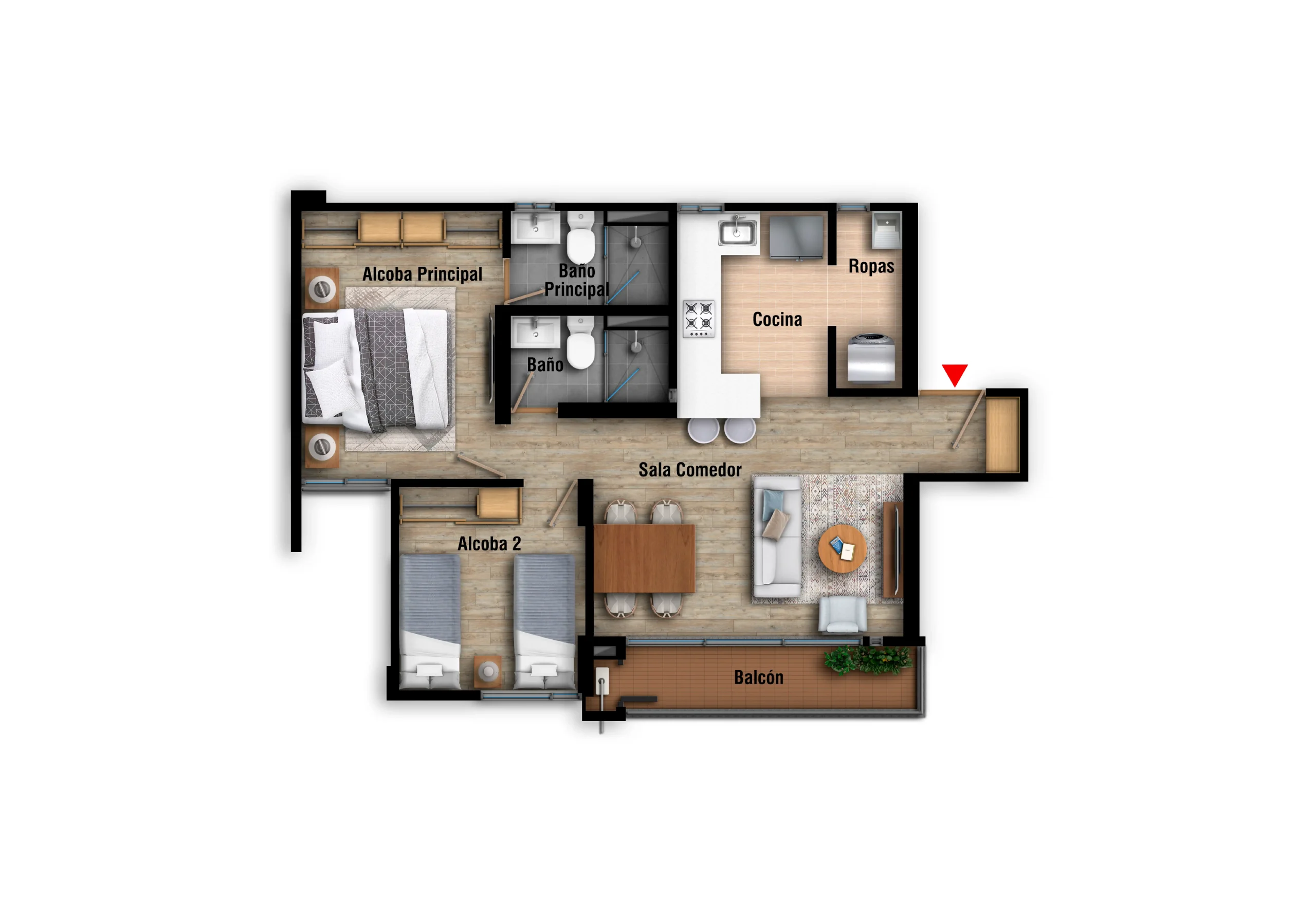 Las dotaciones de las zonas comunes, el mobiliario y los colores planteados, podrán ser modificados por el constructor de acuerdo a la disponibilidad de los elementos al momento de la entrega de los espacios.