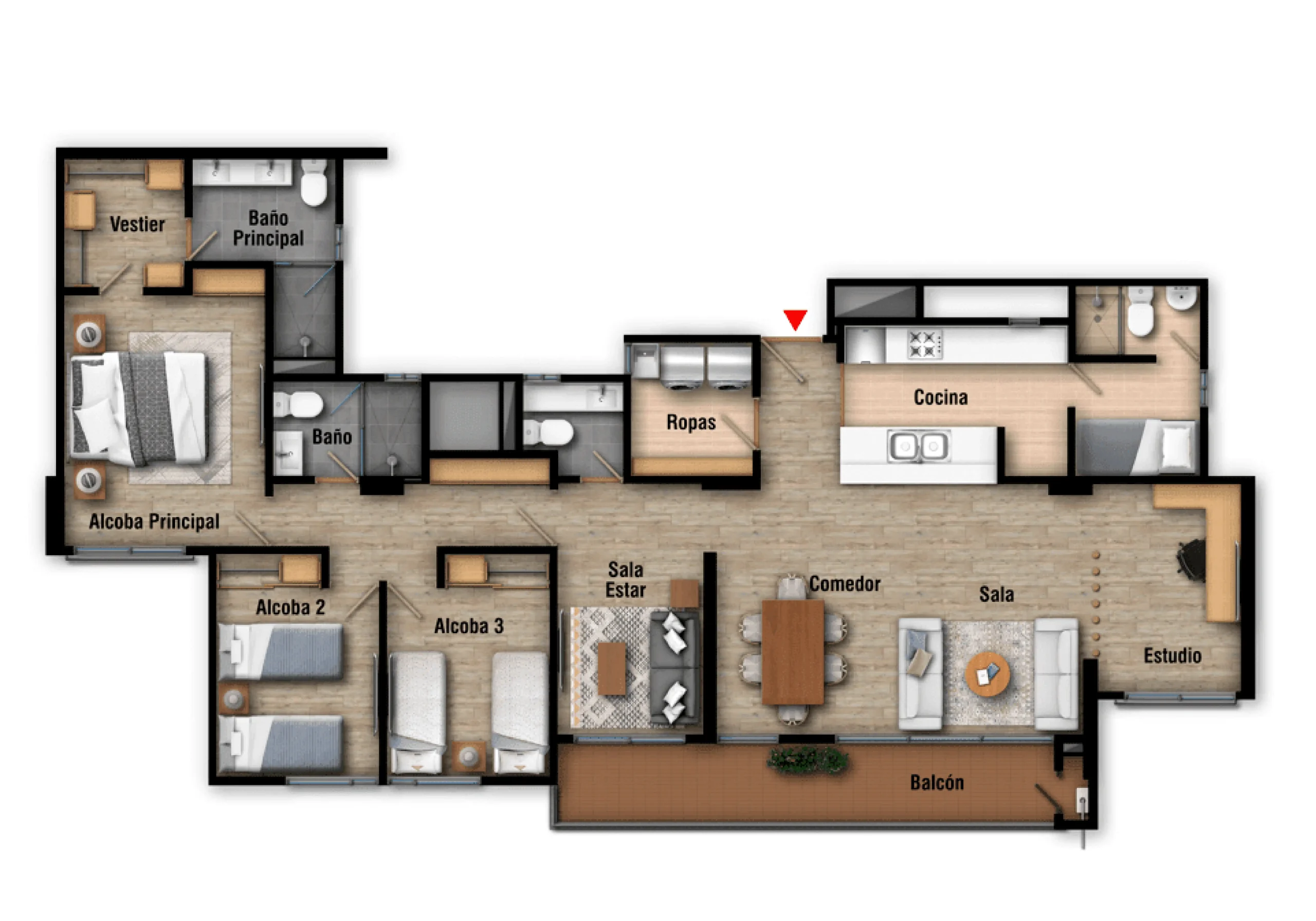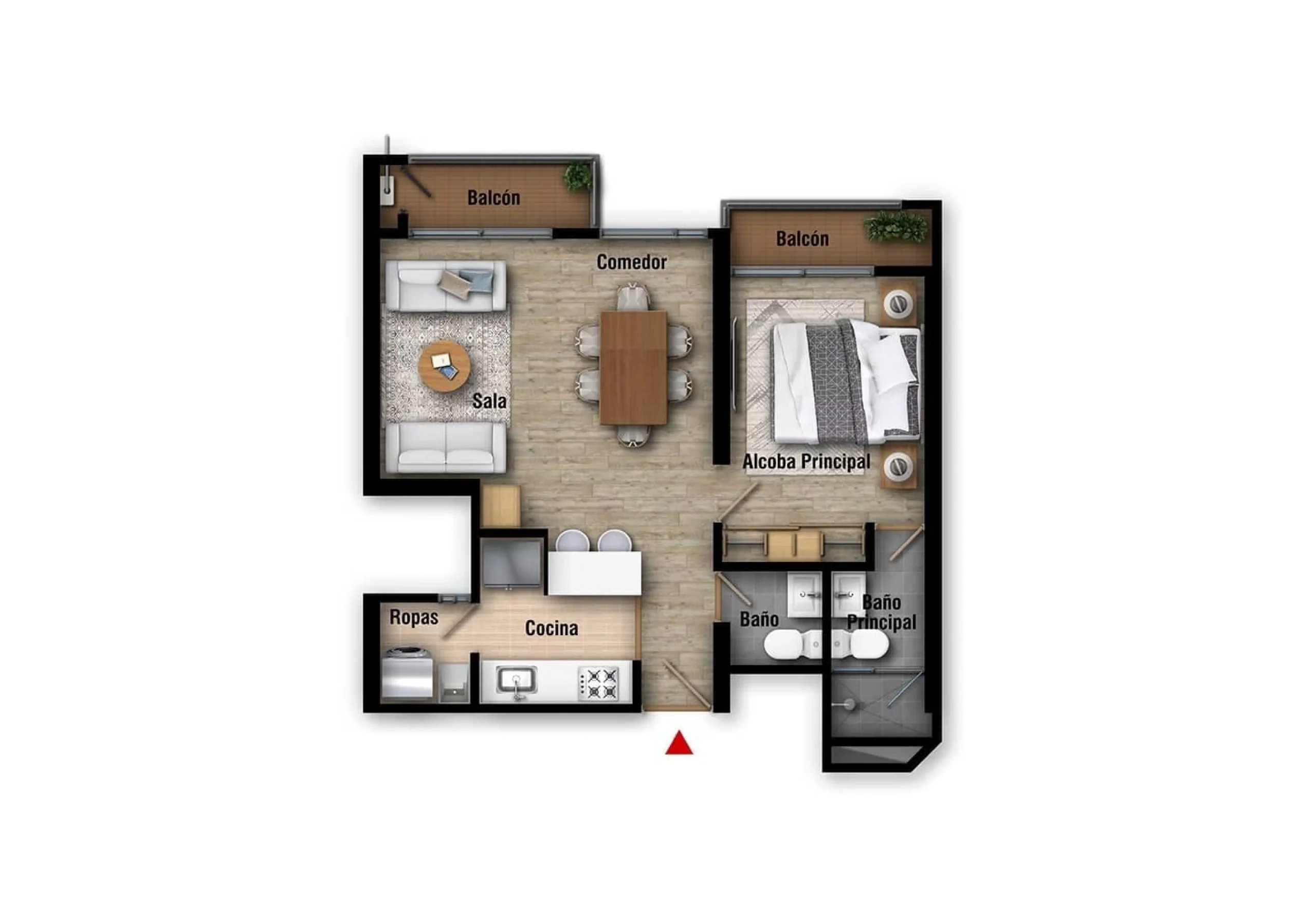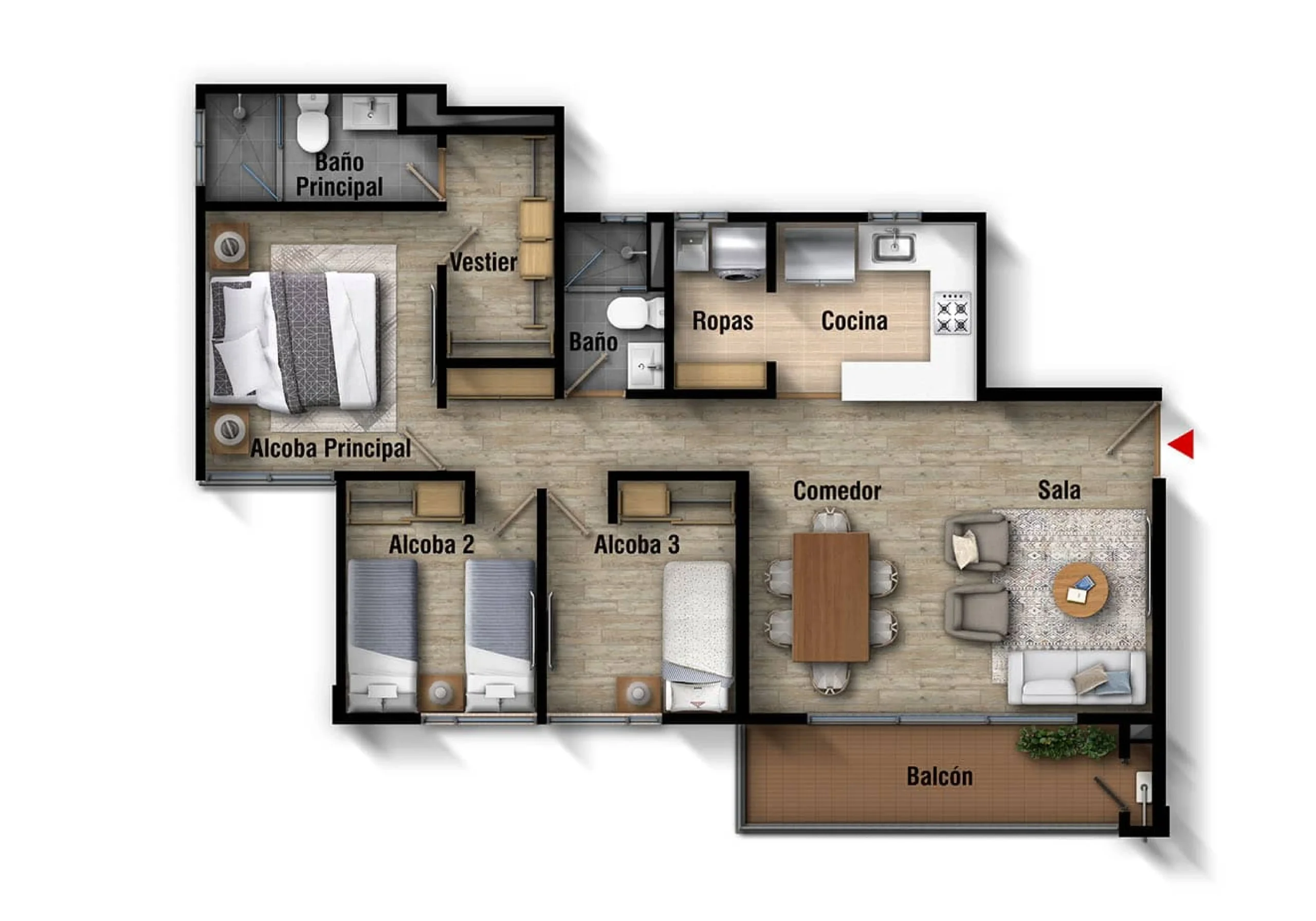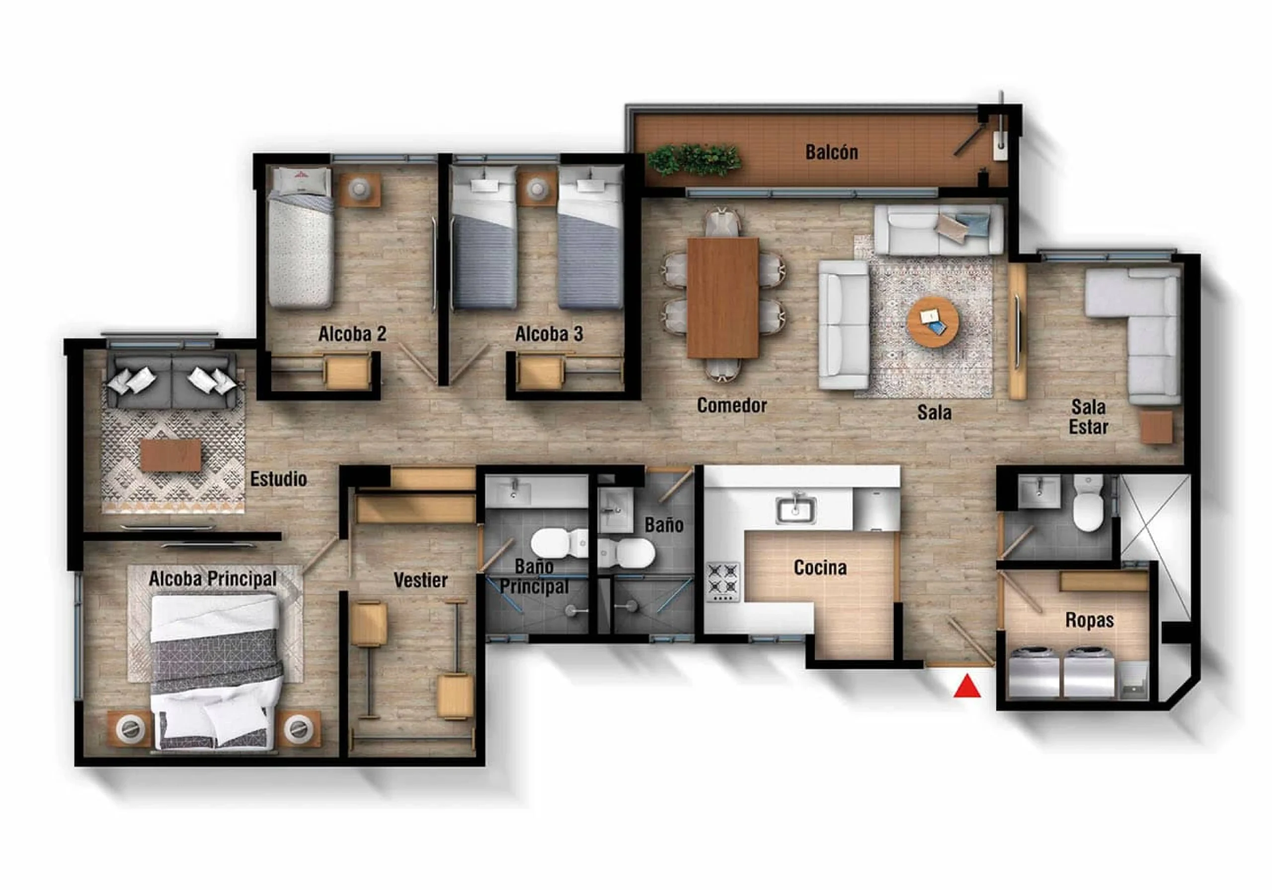 Las dotaciones de las zonas comunes, el mobiliario y los colores planteados, podrán ser modificados por el constructor de acuerdo a la disponibilidad de los elementos al momento de la entrega de los espacios.