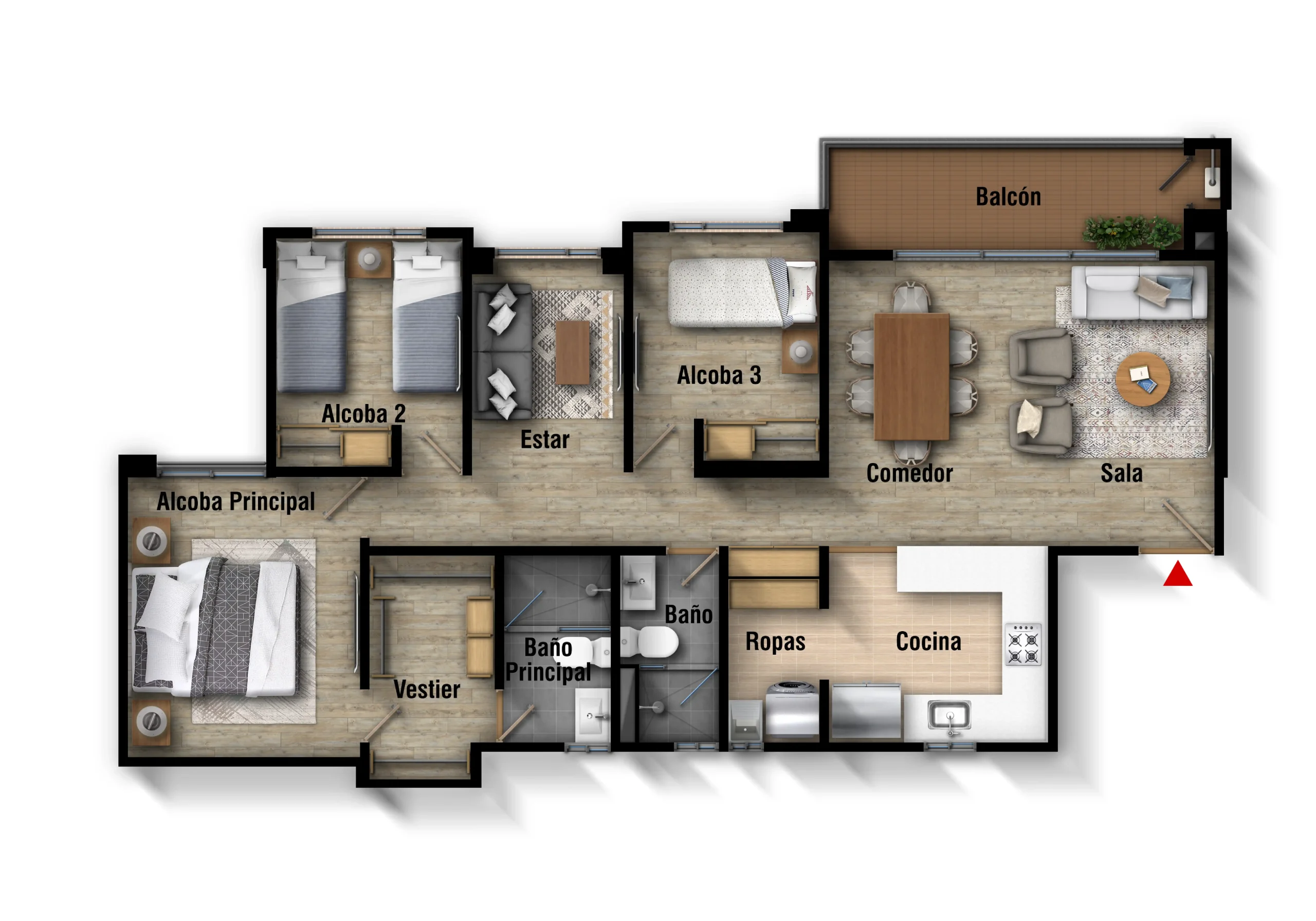 Las imágenes utilizadas en la presentación del proyecto, son representaciones digitales del diseño y junto con los apartamentos y casas modelo exhibidos por Cusezar pueden variar en la percepción y construcción final. Las áreas privadas y construidas podrán sufrir ajustes como consecuencia de las modificaciones en la licencia de construcción ordenadas por la Curaduría o alcaldía competente. Las áreas de balcón y terraza según el Reglamento de Propiedad Horizontal son bienes comunes de uso exclusivo y no hacen parte del área privada ni construida del inmueble. El mobiliario, electrodomésticos, gasodomésticos, acabados y demás elementos que aparecen en las imágenes o en el apartamento o casa modelo, son una representación con el fin de ilustrar la utilización de los espacios, pueden diferir de lo(s) entregado(s) o no ser entregado(s) según lo convenido en los contratos. Las áreas quedarán finalmente determinadas en los contratos suscritos por las partes.